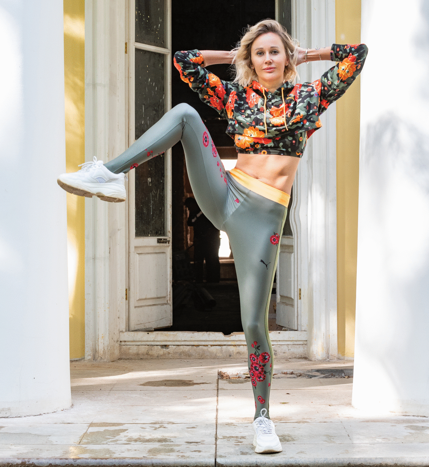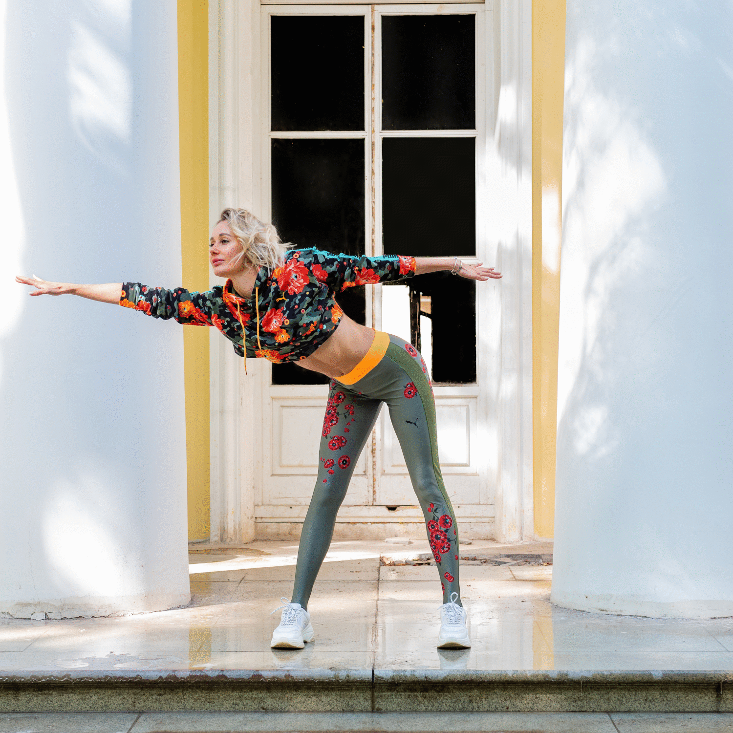 Упражнение «Посох» укрепляет тазобедренные суставы и внутреннюю поверхность бёдер.